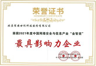 2021年中國網(wǎng)絡(luò)安全與信息產(chǎn)業(yè)最具影響力企業(yè)獎